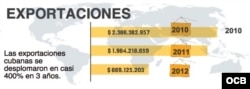 Contrario a lo dicho por Castro las estadísticas de COMEX no muestran ninguna “tendencia favorable de crecimiento”, ya que las exportaciones cubanas en 2012 fueron de apenas $669 millones de dólares frente a los $1,964 millones de 2011.