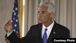 Como gobernador republicano de Florida 2007-11, Crist habló a favor del embargo a Cuba y de las restricciones de los viajes y el comercio impuesto por los EE.UU.al régimen comunista de Cuba.