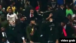 Los guardaespaldas se abalanzaron sobre él para protegerlo y la transmisión de radio y televisión fue abruptamente interumpida.